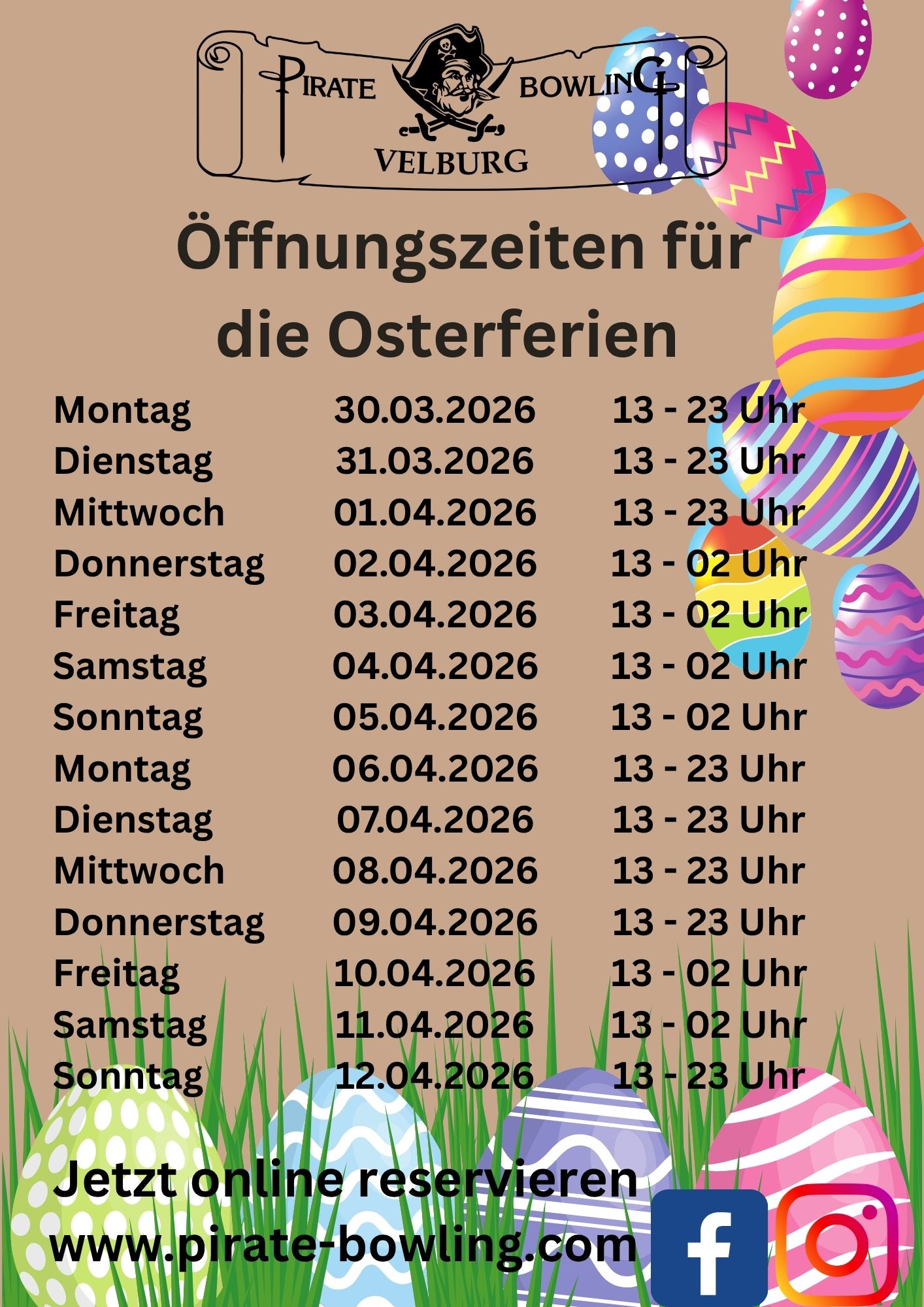 ( *Stornierungen sind nur Telefonisch möglich, wenn Sie nicht online reserviert haben. )